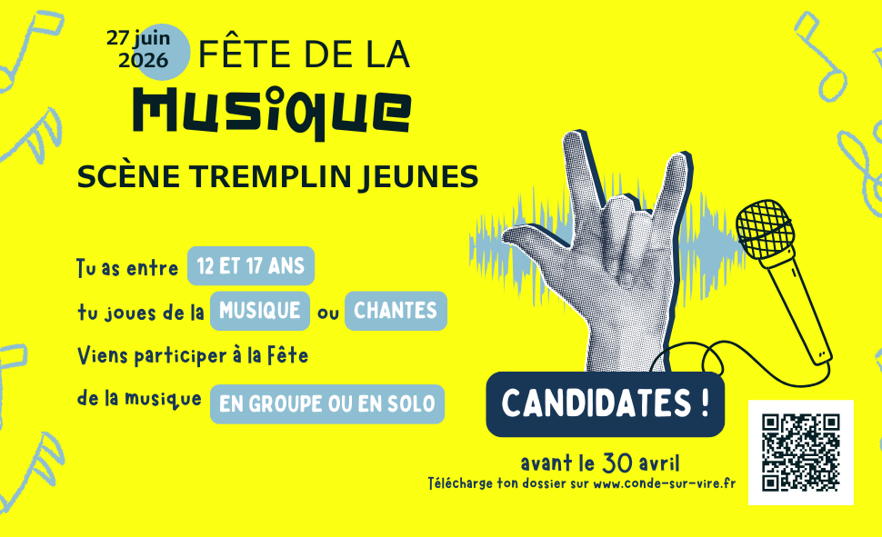 La fête de la Musique est bien sûr programmée samedi 28 juin 2025. Pour organiser cette grande soirée populaire, la Ville de Condé-sur-Vire invite les jeunes musiciens amateurs à se faire connaître afin de prévoir la logistique et les moyens de communication.